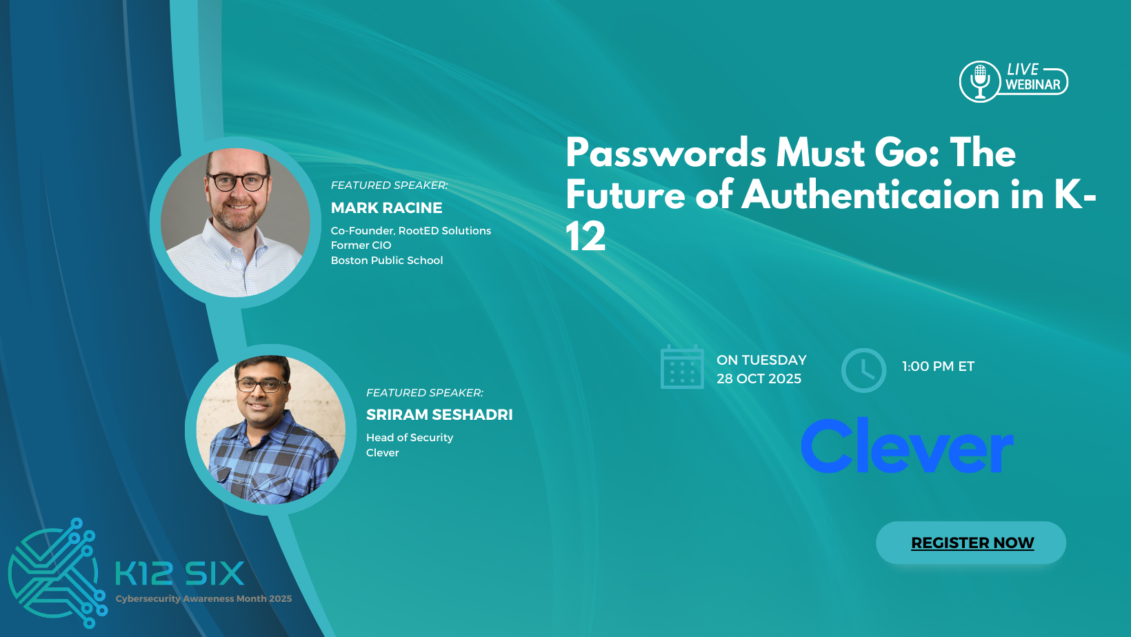 This webinar brings together cybersecurity leaders and district technology executives for a candid, leadership-level debate. Together, they’ll examine which password practices are essential, which ones are slowing progress, and how to chart a realistic path toward a future of flexible yet secure authentication.